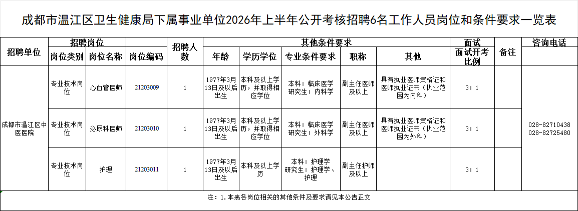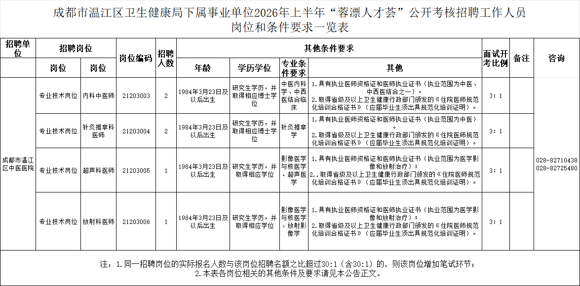 成都市溫江區(qū)衛(wèi)生健康局下屬事業(yè)單位 2026 年上半年「蓉漂人才薈」公開(kāi)考核招聘