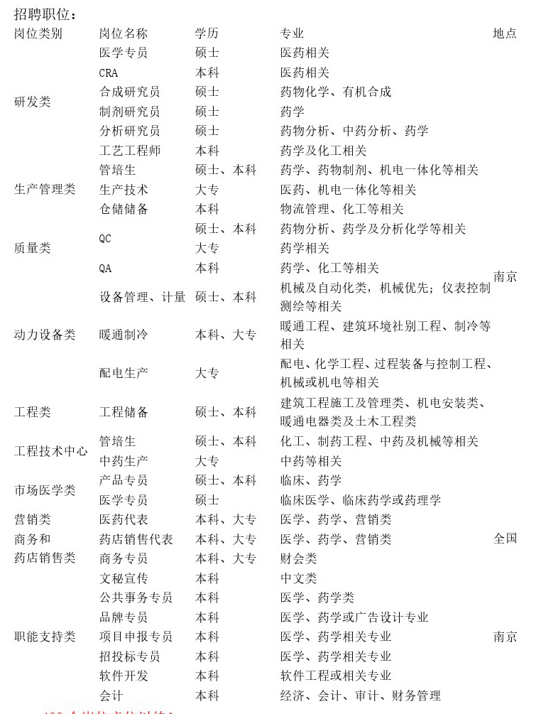 生物制藥類崗位? ? ? ? 工作地:上海、蘇州、無錫