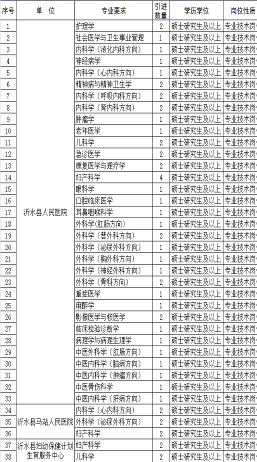 2.2018年沂水縣公立醫(yī)院引進醫(yī)學類高學歷人才計劃表