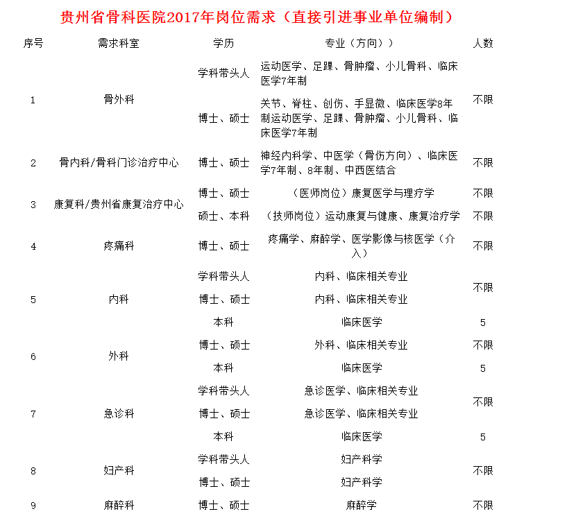 貴州省骨科醫(yī)院直接引進事業(yè)單位編制人員公告