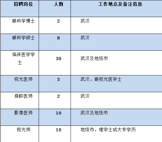 2、簡歷投遞地址:eye027zhaopin@163.com,電子郵件主題:學(xué)?!獞?yīng)聘崗位—姓名—專業(yè);或攜帶資料:個人簡歷、身份證復(fù)印件、畢業(yè)證復(fù)印件、學(xué)位證復(fù)印件、執(zhí)業(yè)資格證書復(fù)印件等直接上門面試(周一至周五8:30—16:30),統(tǒng)一面試地點:武漢愛爾醫(yī)院五樓人事科。