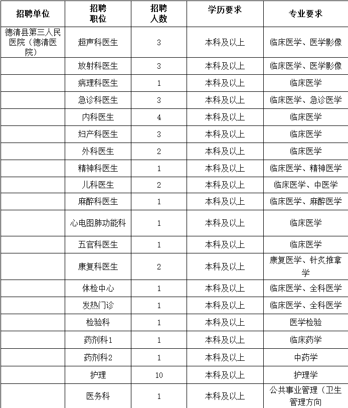 浙江省德清醫(yī)院(原德清縣第三人民醫(yī)院)招聘簡(jiǎn)章公告