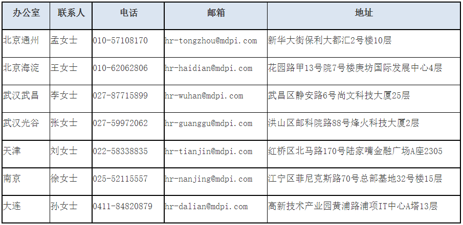 MDPI中國區(qū)在北京,武漢,天津,南京,大連共設(shè)有七個代表處,主要負(fù)責(zé)MDPI期刊的編輯出版工作