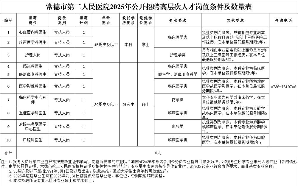 2025湖南常德市第二人民醫(yī)院招聘高層次人才10人公告