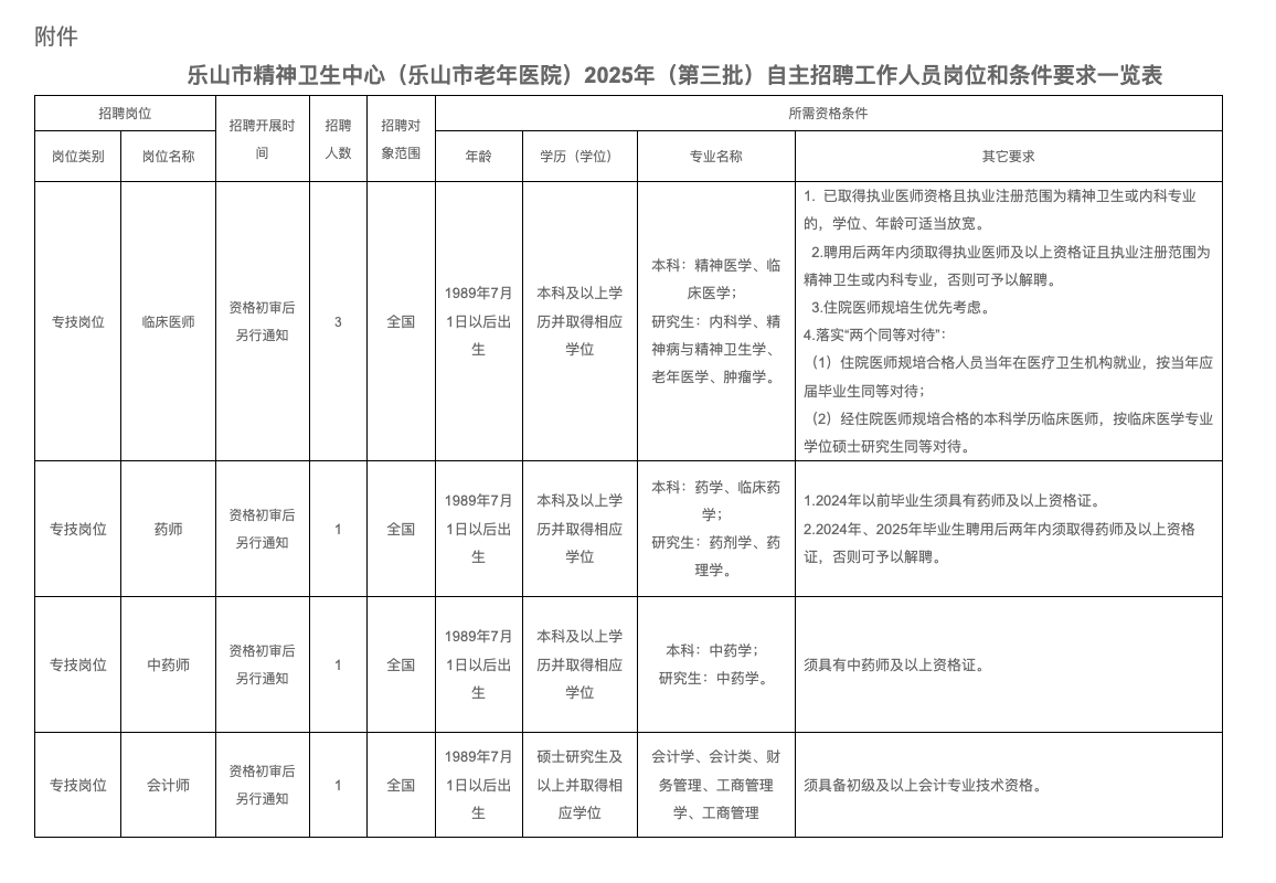 2025四川樂山市精神衛(wèi)生中心樂山市老年醫(yī)院自主招聘6人公告