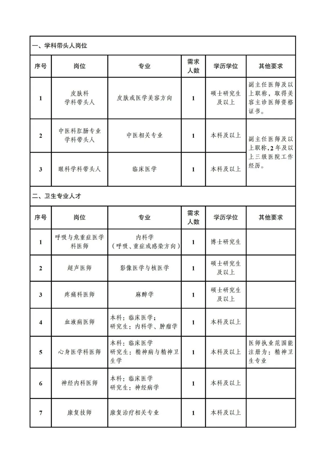 2. 報(bào)名時(shí)間:皮膚科、中醫(yī)科肛腸專(zhuān)業(yè)和眼科學(xué)科帶頭人3個(gè)崗位招滿為止,其他崗位報(bào)名截至2025年7月31日。