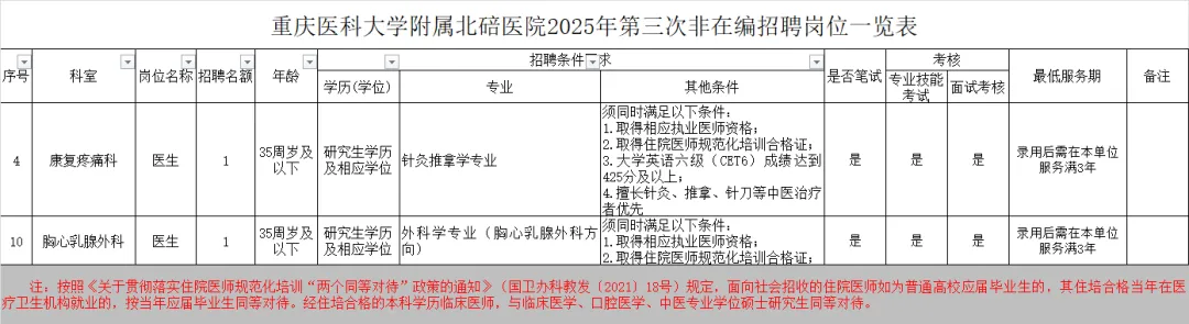 本次公開招聘非在編工作人員2名,具體招聘崗位詳見《重慶醫(yī)科大學(xué)附屬北碚醫(yī)院2025年第三次非在編招聘崗位一覽表》(附件1)。