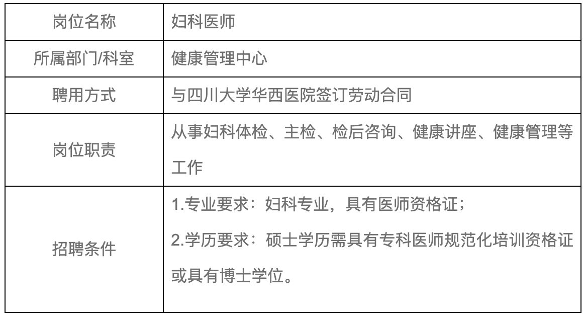 2025四川大學(xué)華西醫(yī)院健康管理中心婦科醫(yī)師招聘2人啟事