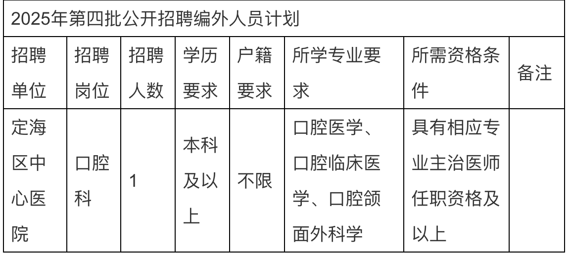 2025浙江舟山市定海區(qū)衛(wèi)生健康系統(tǒng)2025年第四批公開招聘編外人員1人公告