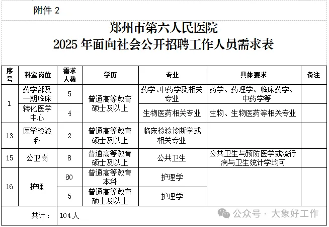 2025河南鄭州第六人民醫(yī)院社會(huì)招聘104人公告