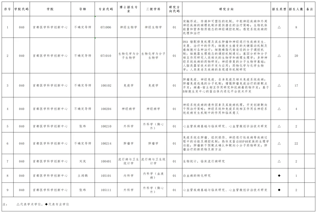 附:首都醫(yī)學(xué)科學(xué)創(chuàng)新中心2026 年博士研究生「申請(qǐng)-考核」制招生專業(yè)目錄