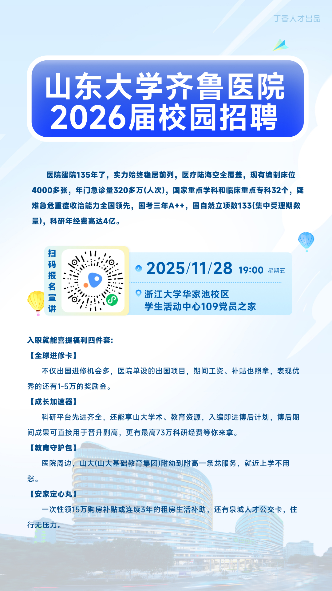 山東大學(xué)齊魯醫(yī)院啟動(dòng)最新校招浙大站(11.28 19:00)