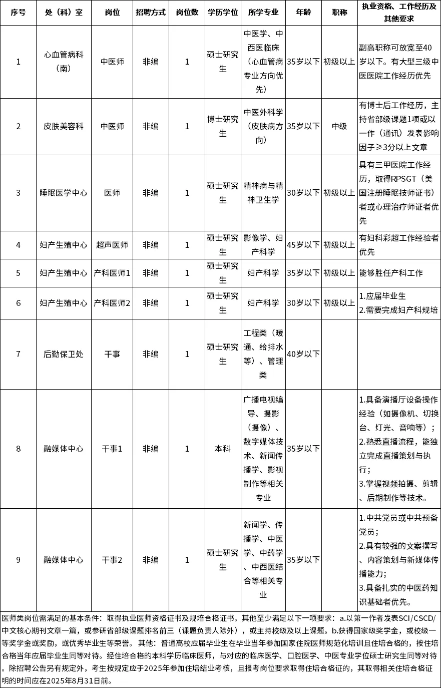 2025重慶市中醫(yī)院第十批招聘計劃9人公告