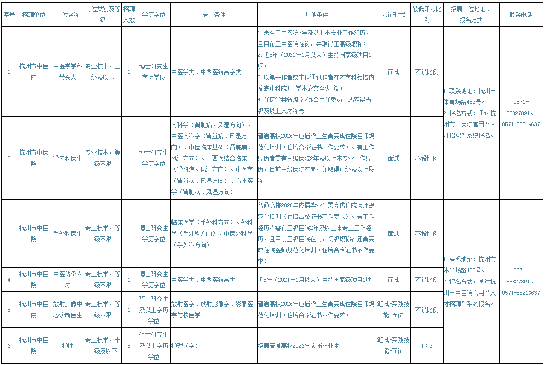 2026年上半年杭州市中醫(yī)院(武林院區(qū)/丁橋醫(yī)院)公開招聘高層次人才公告